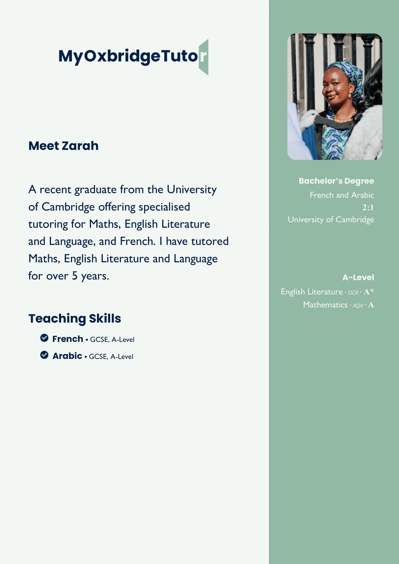 Looking for affordable, high-quality languages tutoring? Our fixed-rate matching scheme connects you with skilled tutors who excel in helping students achieve their goals. Each tutor’s profile includes their own GCSE and A-Level results, so you can select someone who understands the curriculum inside and out.