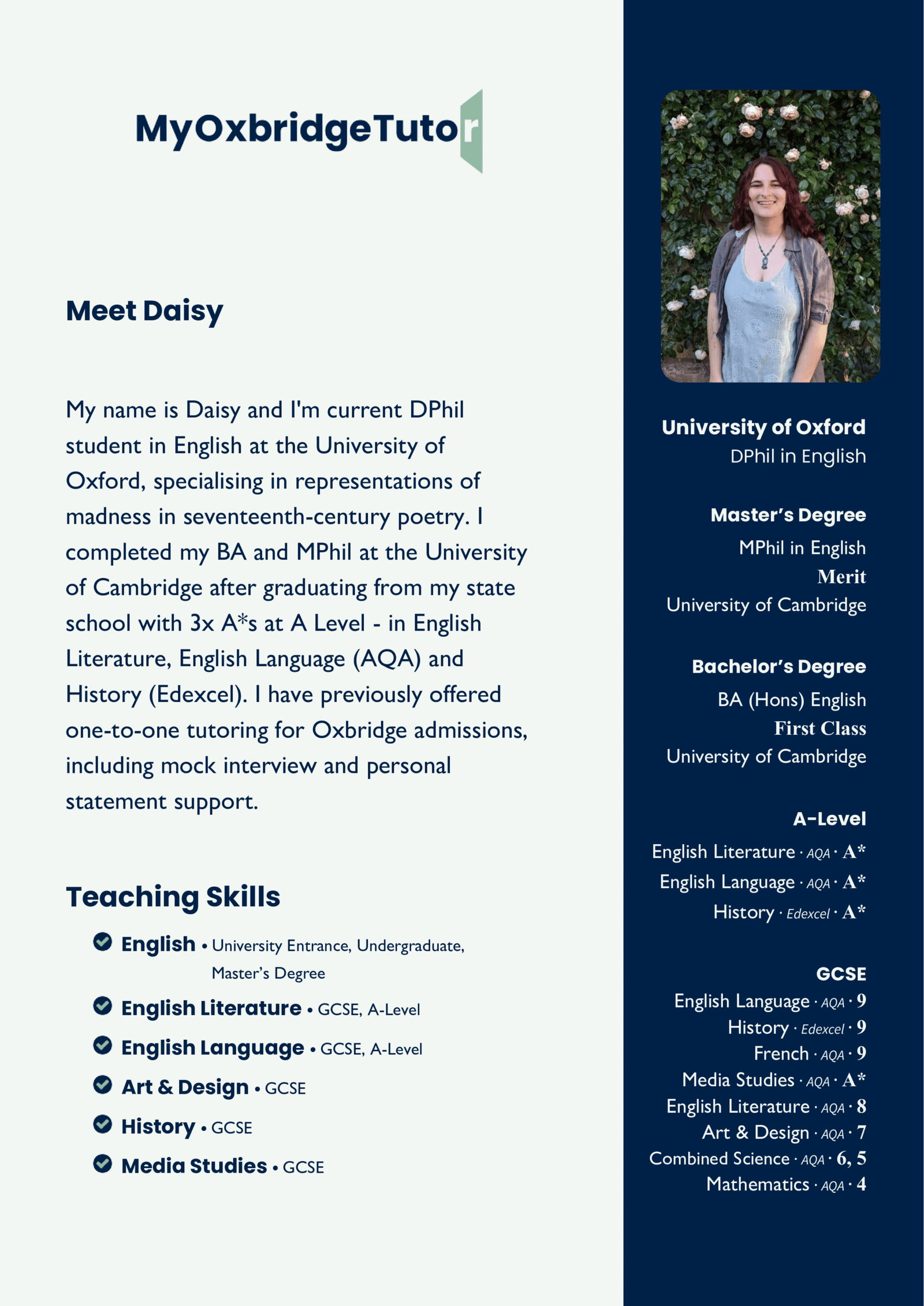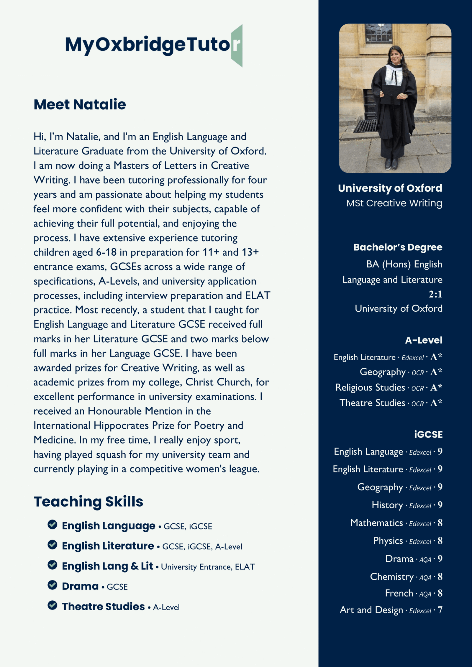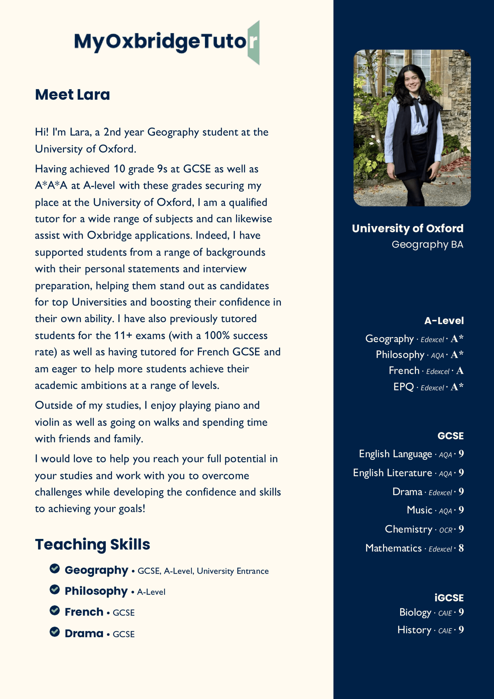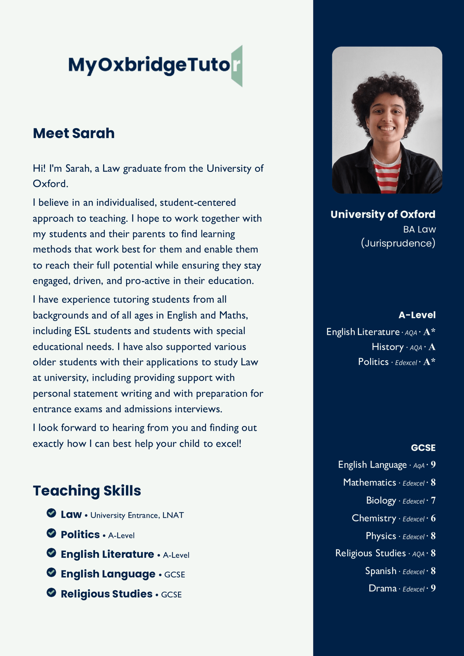 Looking for affordable, high-quality tutoring? Our fixed-rate matching scheme connects you with skilled tutors who excel in helping students achieve their goals. Each tutor’s profile includes their own GCSE and A-Level results, so you can select someone who understands the curriculum inside and out.
