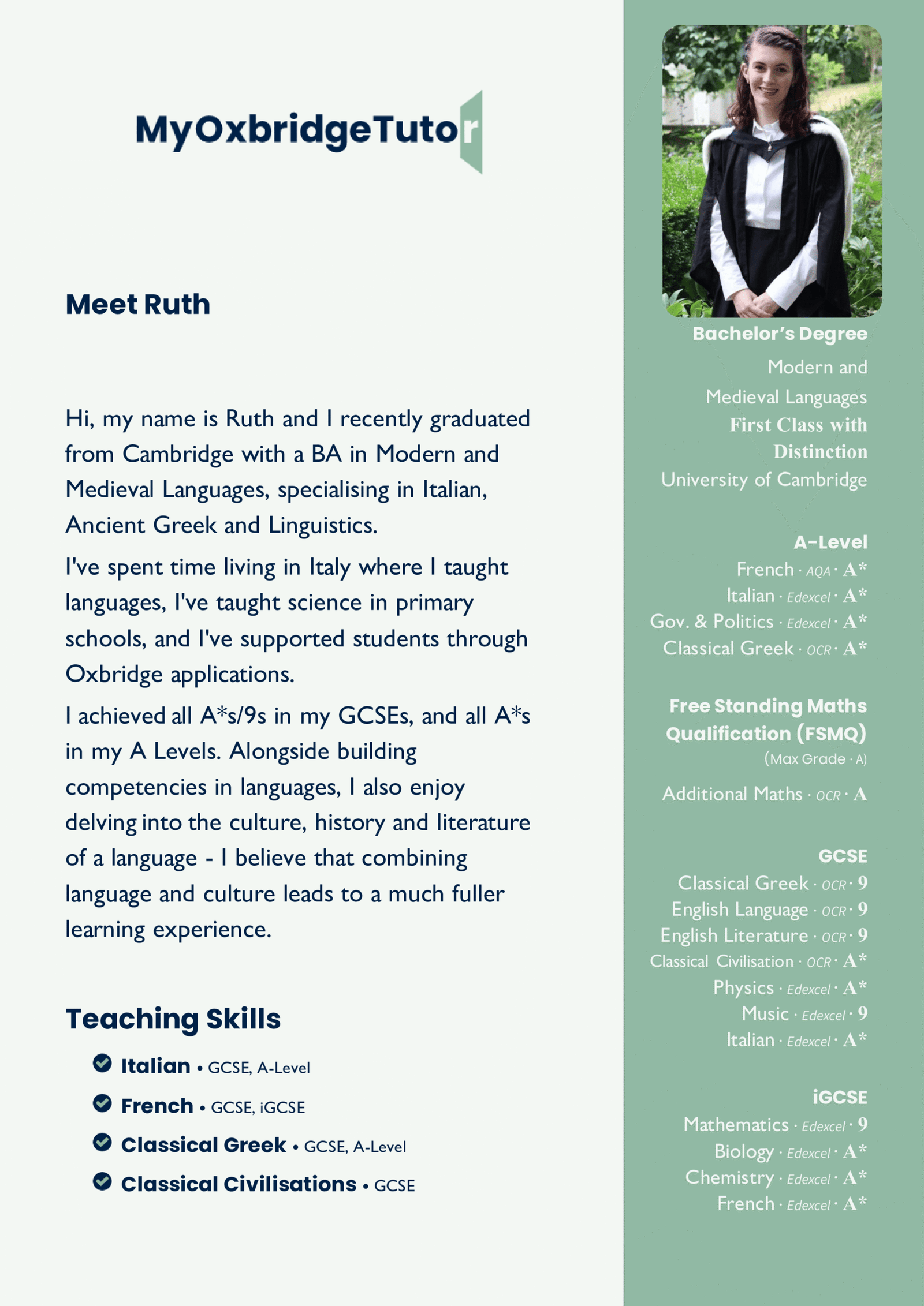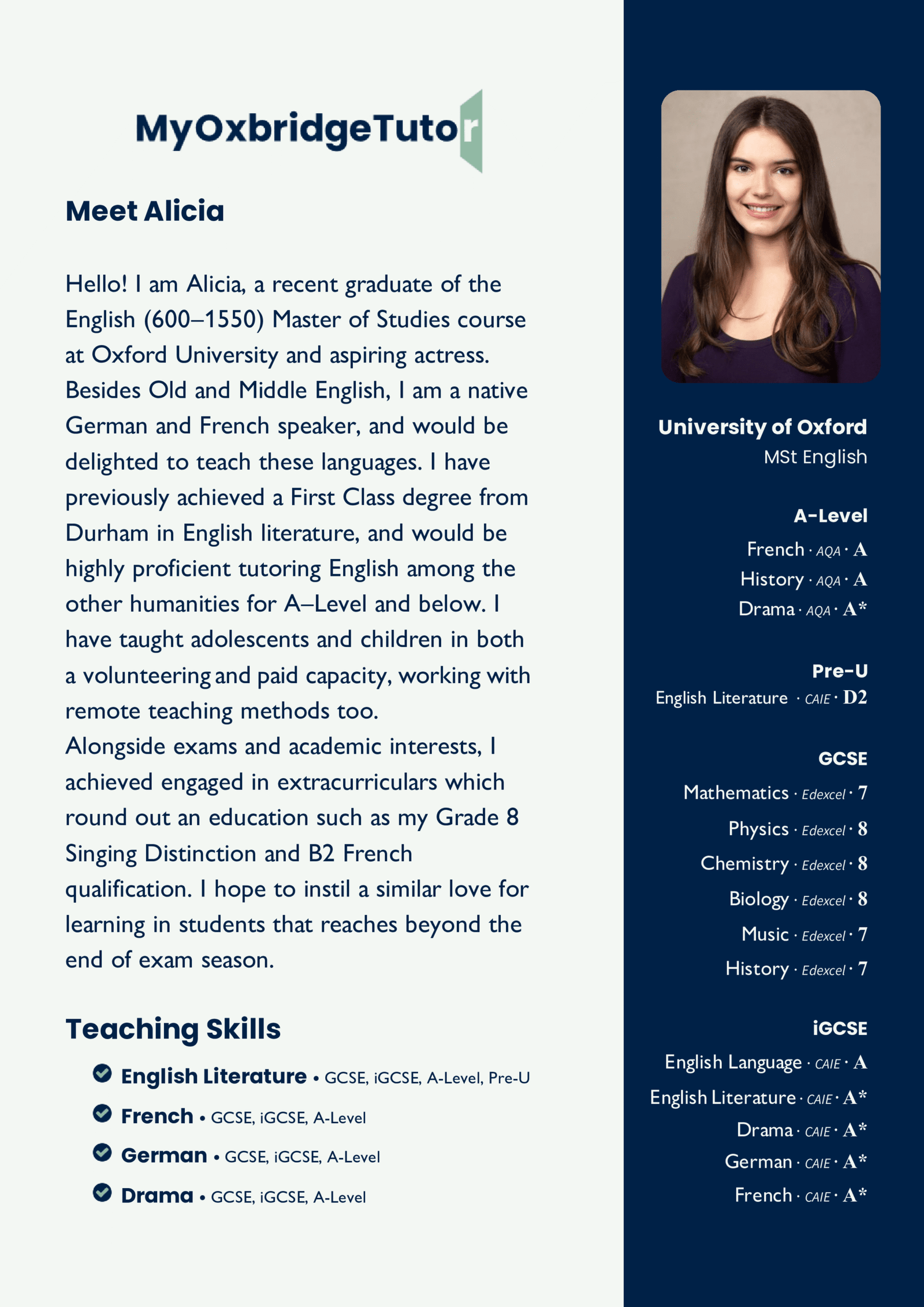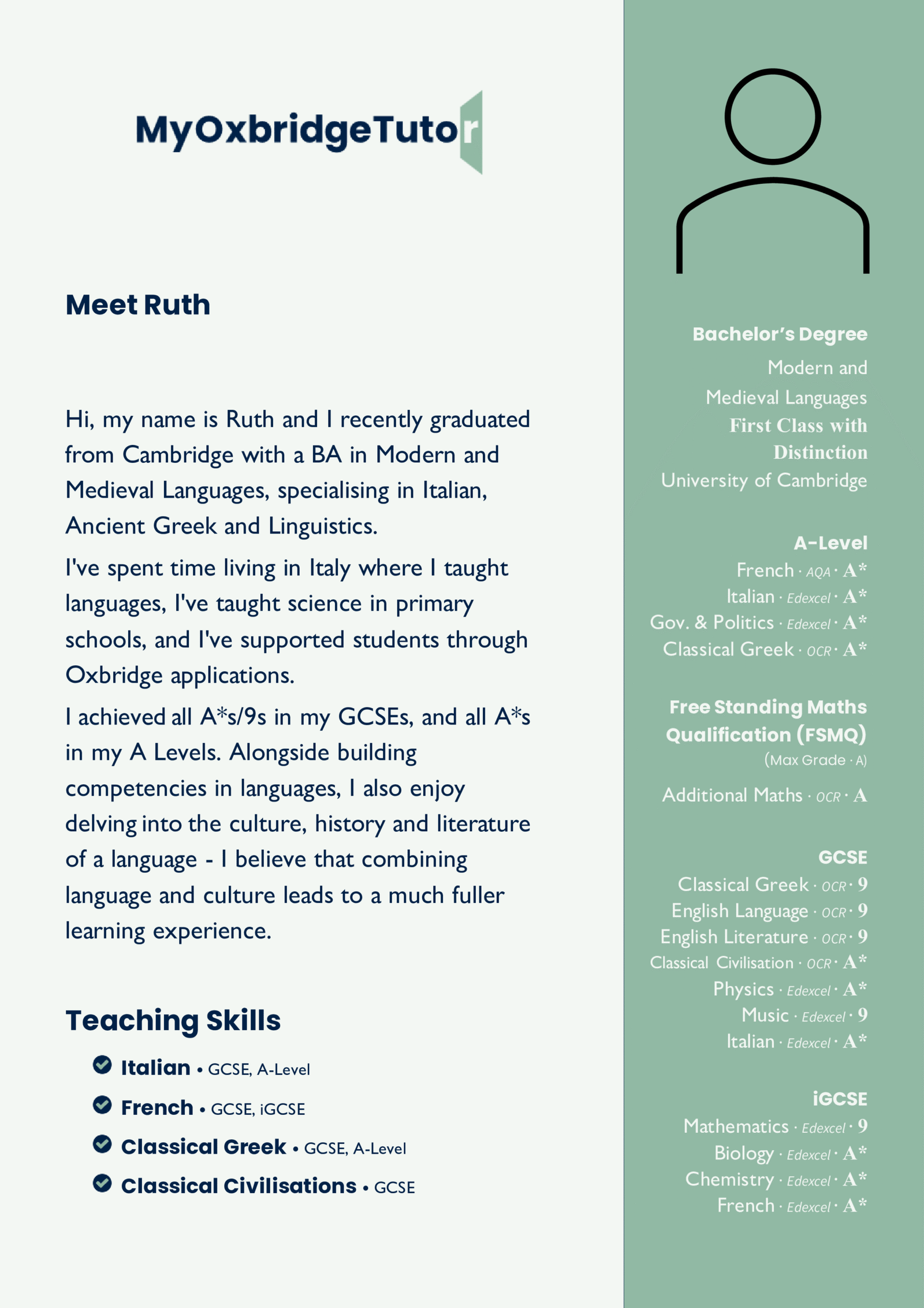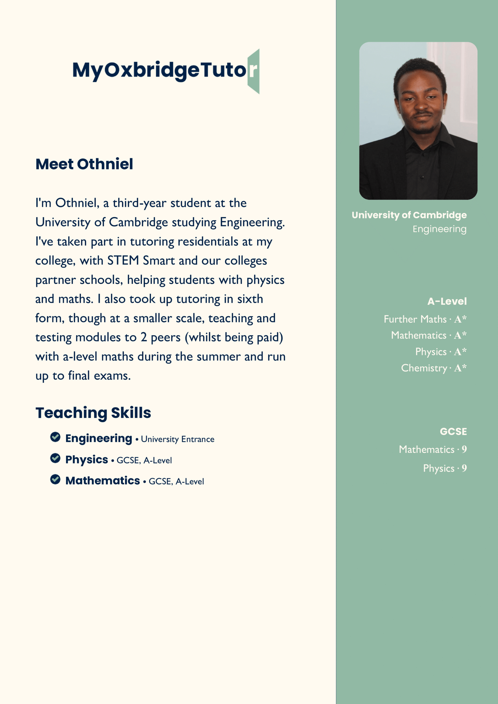 Looking for affordable, high-quality tutoring? Our fixed-rate matching scheme connects you with skilled tutors who excel in helping students achieve their goals. Each tutor’s profile includes their own GCSE and A-Level results, so you can select someone who understands the curriculum inside and out.